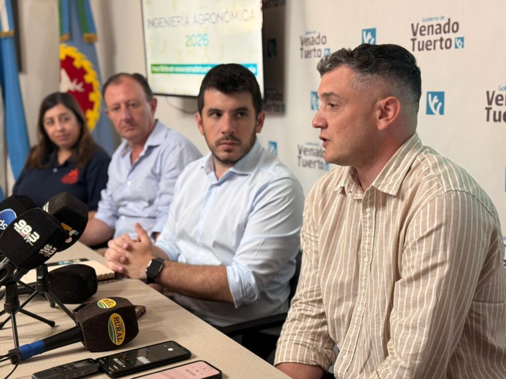 (PR) Este martes el Municipio venadense anunció el lanzamiento de la carrera de Ingeniería Agronómica de la Universidad Nacional de Rosario (UNR) en la ciudad. La presentación se realizó en Rosario, con la participación del intendente Leonel Chiarella; el rector de la UNR, Franco Bartolacci; autoridades de la Facultad de Ciencias Agrarias; y representantes de la Escuela Salesiana, que cederá su predio para las prácticas de campo.