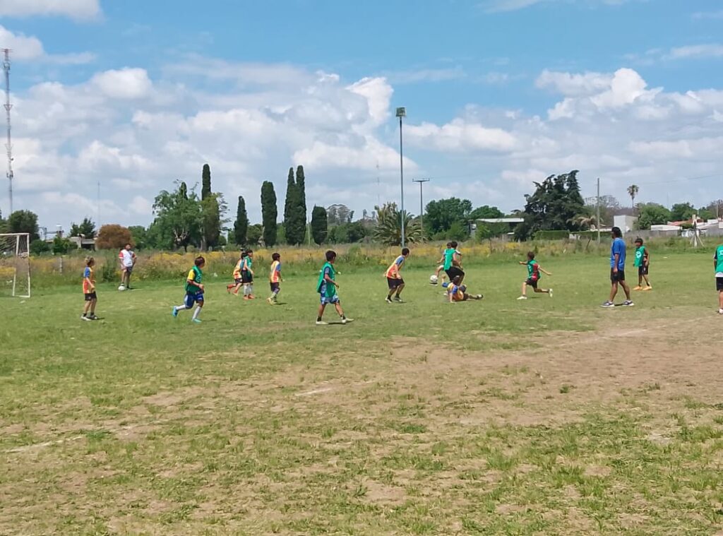 (PR/Norma Migueles) Hace un año, un grupo de padres incentivados por el profesor Francisco Avalos armó una escuelita de fútbol en la incipiente canchita en Bv. Solís y General Savio de la ciudad de Firmat.