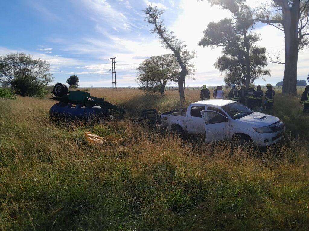 Por causas a establecer, el conductor de una camioneta Toyota Hilux, que llevaba enganchada una cisterna, habría perdido el control del vehículo provocando su derrape hacia el lado sur de la ruta.