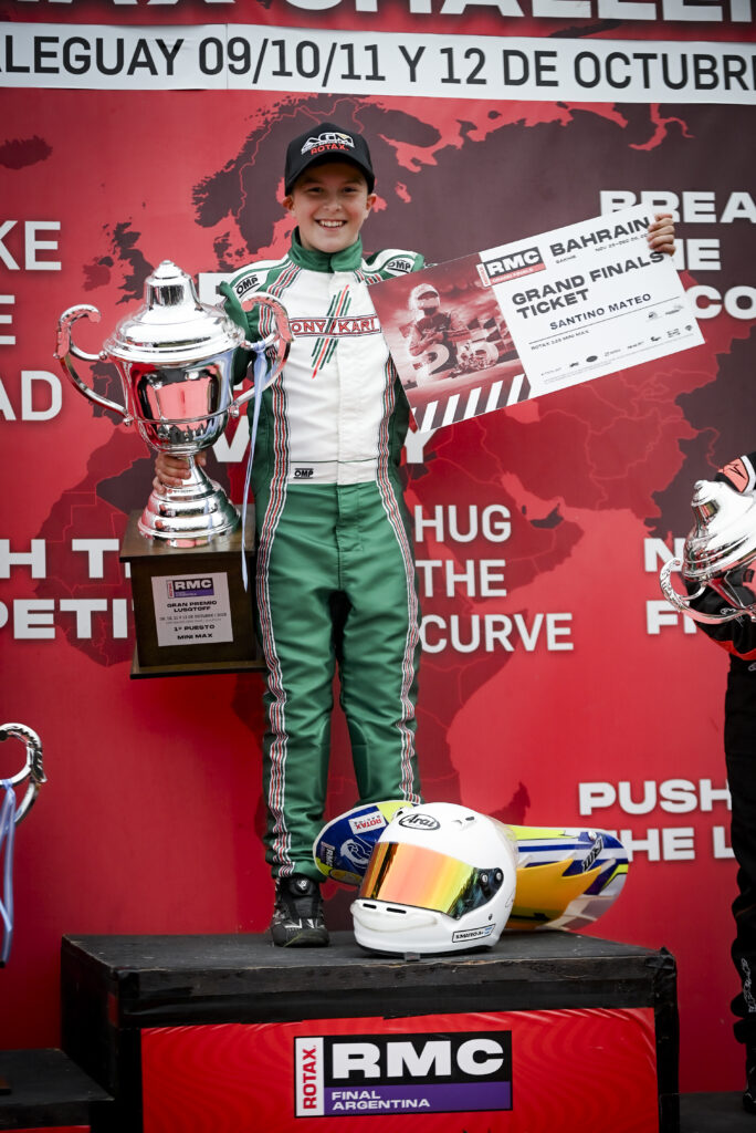 En lo que va de la presente temporada, Santino Mateo impone su talento con nombre y apellido siendo campeón Mini Max del Trofeo de Otoño, además de ser el líder del Trofeo de Invierno que aún se está corriendo y será uno de los 9 pilotos que representarán a la Argentina en Bahrein, donde se disputará la RMC Grand Finals, del 29 de noviembre al 6 de diciembre.