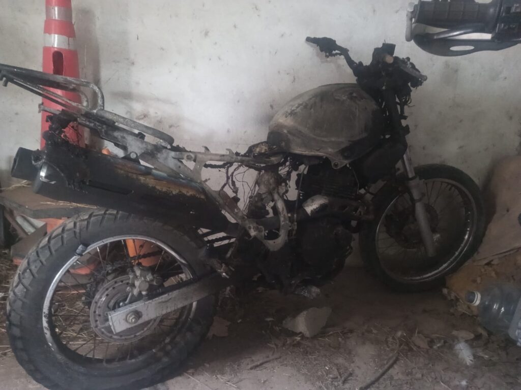 Tras consulta con Fiscalía, se dispuso solicitar una requisa voluntaria, contando con apoyo de la Subcomisaría 14. En ese momento, el joven comenzó a insultar al personal policial, se dirigió al fondo de la vivienda y tras colocar la moto contra una pared desconectó una manguera de combustible, provocando el incendio total del vehículo.